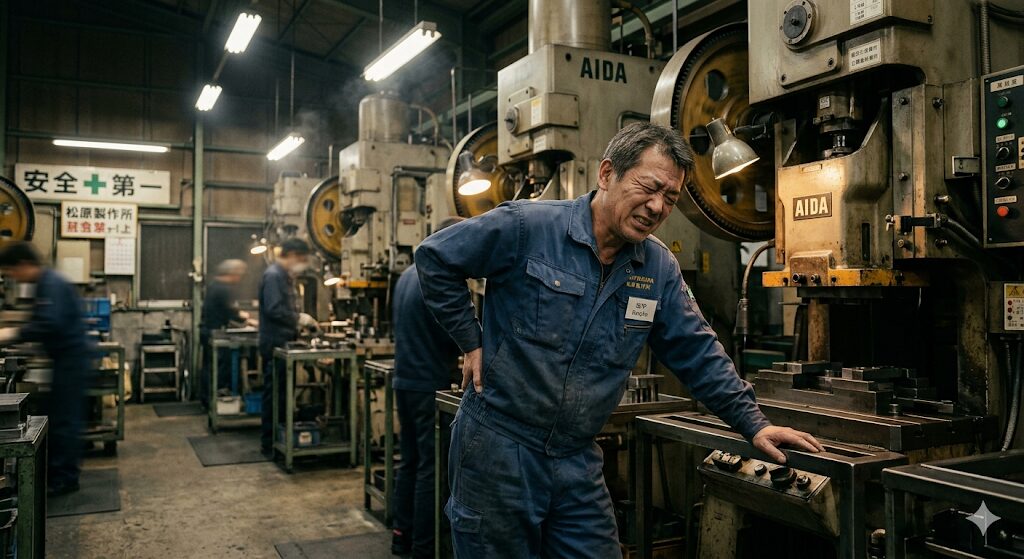 さらに怖いのが、取り返しのつかない事故のリスクです。腰痛のせいで踏ん張りが利かなくなったり、肩こりで首が回らなくなって視野が狭くなったりする。そんな状態で重いものを運んだり、複雑な機械を操作したりすれば、大事故が起きる確率は格段に上がります。一度でも大きな事故が起きてしまったら、その社員さんの人生はもちろん、会社が長年積み上げてきた社会的信用も一瞬で崩れてしまいます。特に人の少ない中小企業で、一人の熟練工が欠ける穴は、想像以上に大きい。代わりの人を募集しても、今の時代、なかなかすぐには見つかりません。